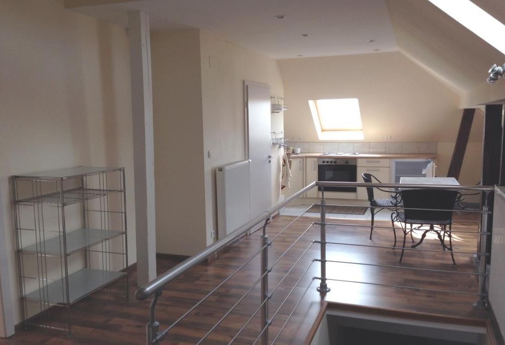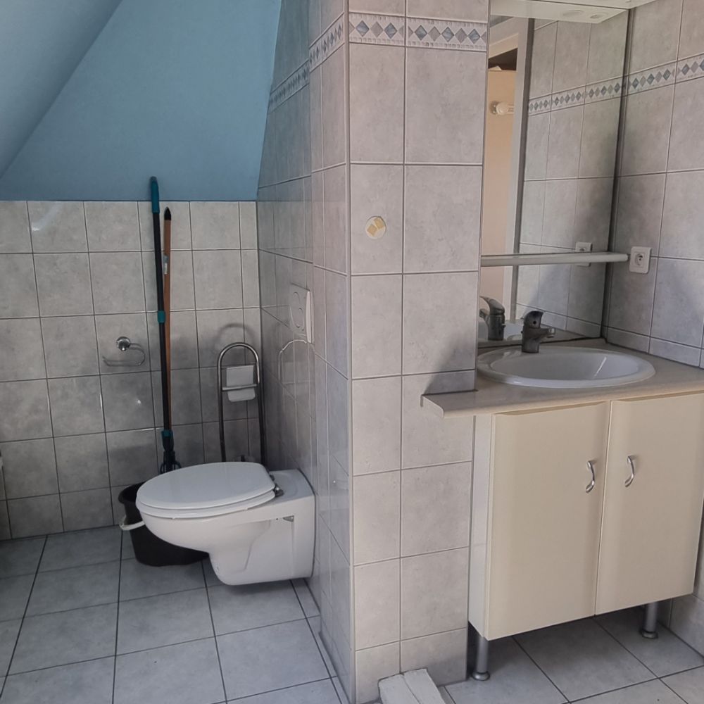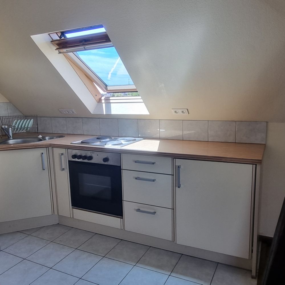 Le logement meublé comprend une cuisine équipée, un séjour, une chambre, une pièce en surcombles pouvant servir de bureau et une salle d'eau. Un service machine à laver à disposition.