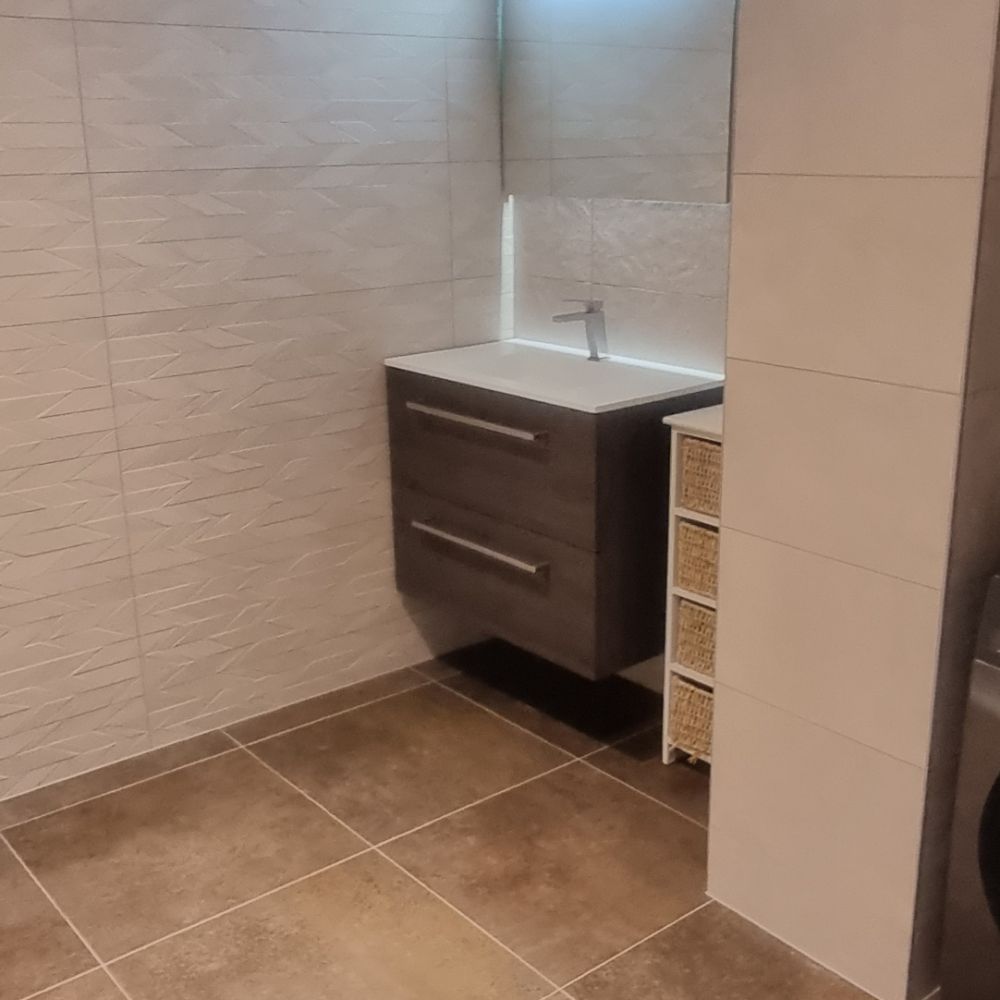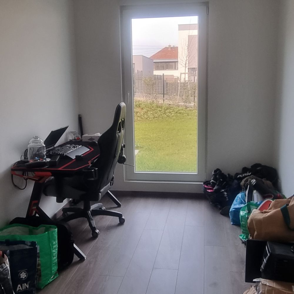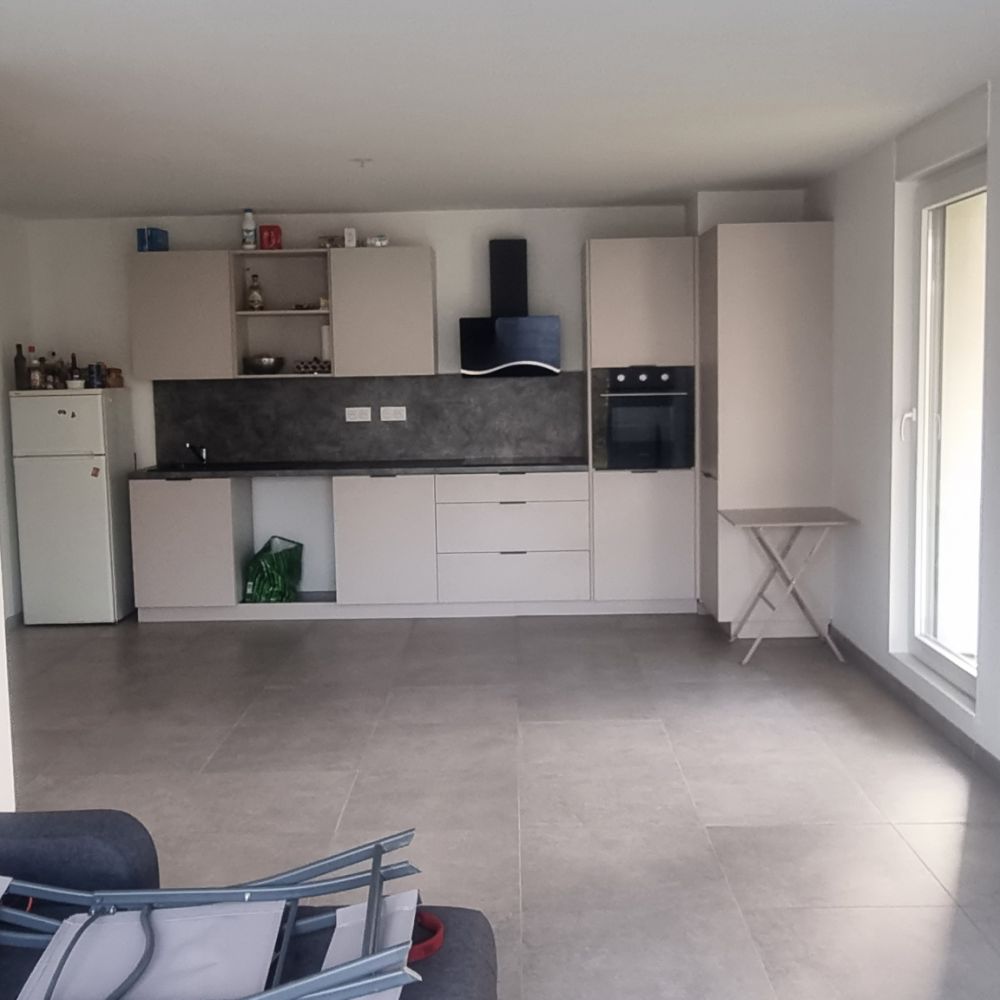 Appartement 4P en rez-de-jardin d'un immeuble neuf situé dans une impasse, comprenant une entrée avec placard, une cuisine équipée ouverte sur le séjour de 33,50 m2, trois chambres, une salle d'eau avec douche et un WC séparé.