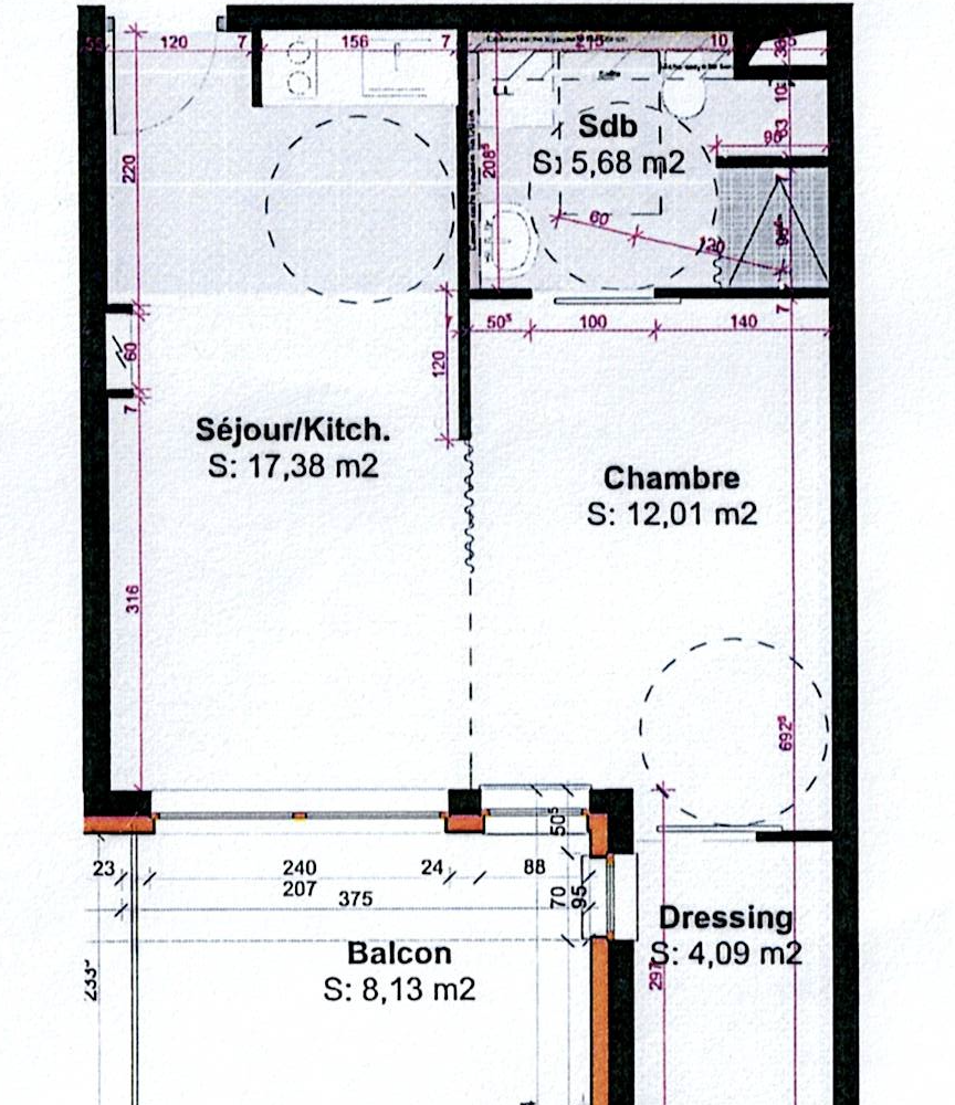Le logement comprend une entrée, un dégagement, un WC séparé, une salle d'eau, une kitchenette ouverte sur la pièce de vie, ainsi qu'une chambre indépendante, permettant un aménagement fonctionnel et adapté. Un balcon de 8,10 m2, idéalement orienté pour profiter pleinement des extérieurs, vient valoriser l'ensemble.