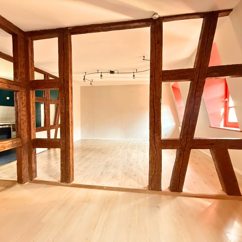 D'une surface de 42,60 m2 habitables (48 m2 au sol), ce bien séduit immédiatement par le cachet de l'ancien : beaux volumes sous les toits, poutres apparentes et atmosphère chaleureuse en font un lieu de vie plein de caractère.